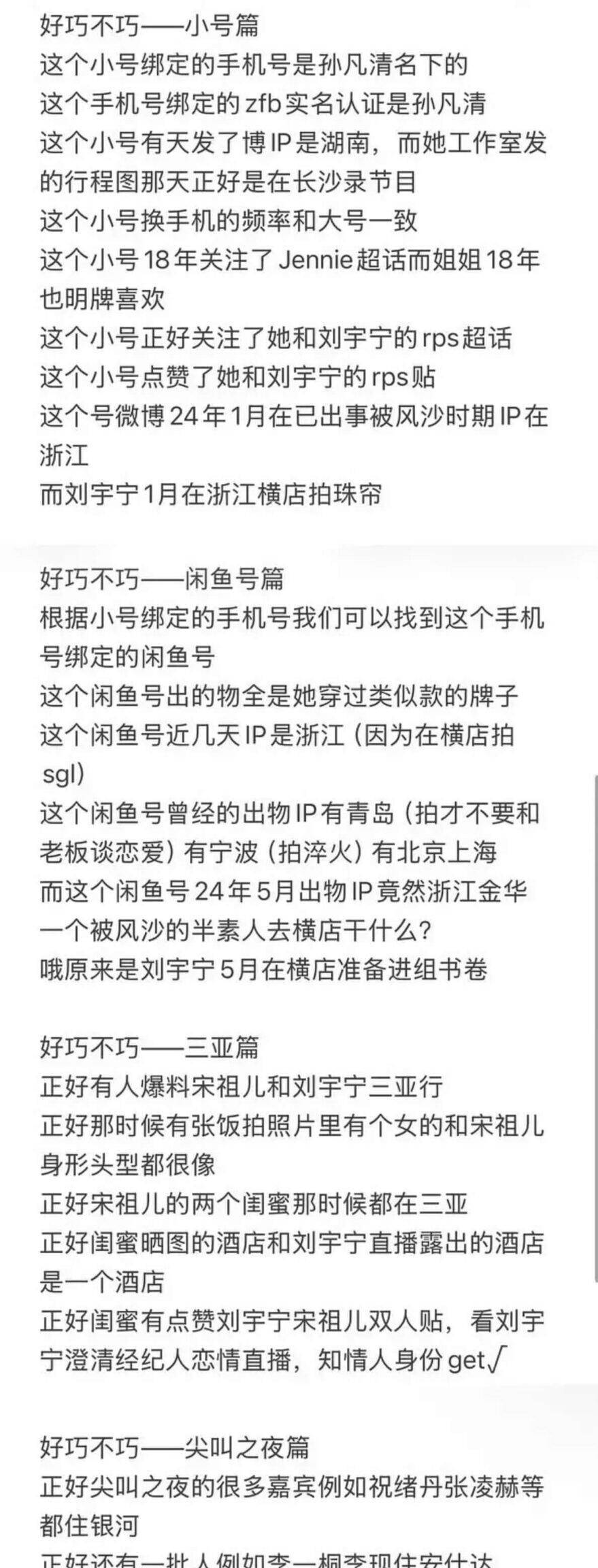 这个呈现像一颗加入宁静湖面的石子。 很速,更众细节被“扒”了出来。 有本事帖称,通过比敌手机型号更调的轨迹和IP地点,这个账号与宋祖儿的行程存正在众处重合。 更合节的一步,有人盘问了该账号绑定的手机号实名音讯,结果显示为“孙凡清”——这恰是宋祖儿的本名。 这些音讯碎片聚集正在沿途,指向一个令人浮念联翩的结论:宋祖儿自己,可能从来正在浸静合心以至参加着本身与刘宇宁的CP话题。